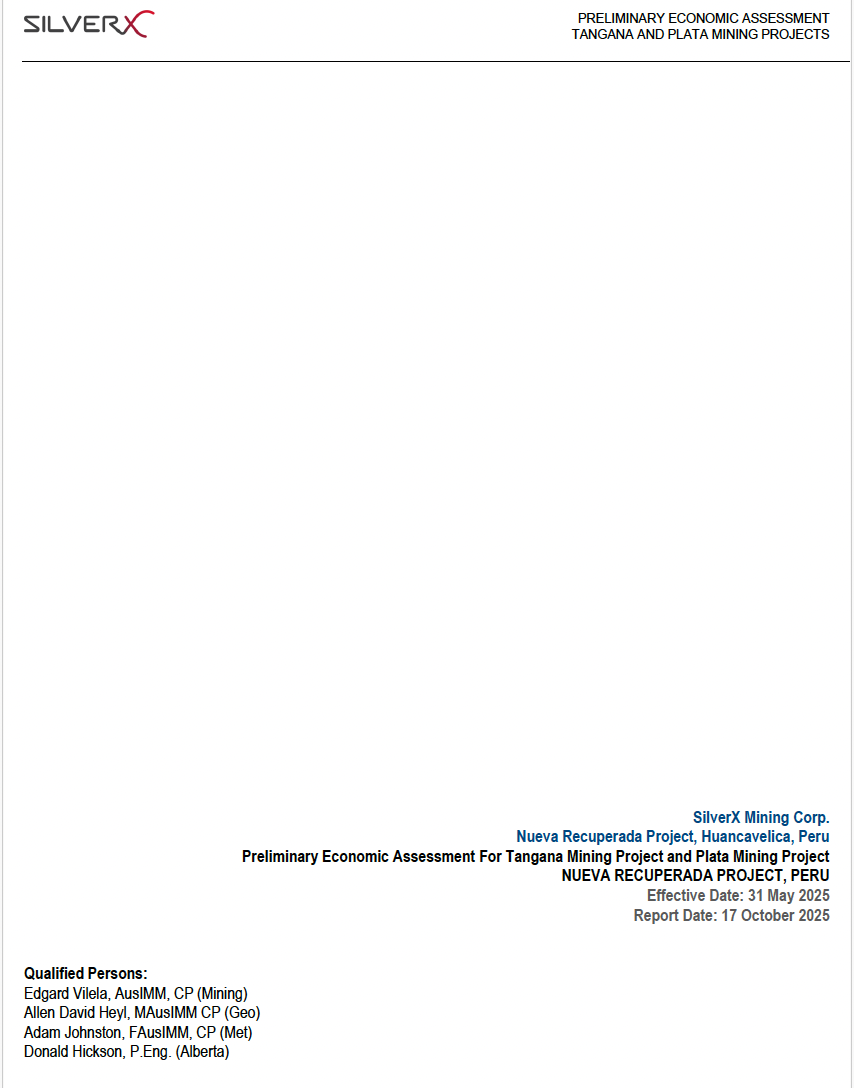 PEA Technical Report for Plata Mining Unit & Tangana Mining Unit, Nueva Recuperada