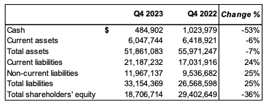 - Operating loss of $1.0 million in Q4 2023. Net loss before tax of $5.9 million in Q4 2023.