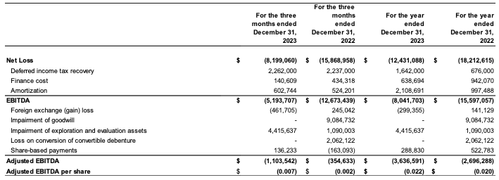 - EBITDA loss of $8.0M, compared to an EBITDAloss of $15.6M in the year ended December 31, 2022.